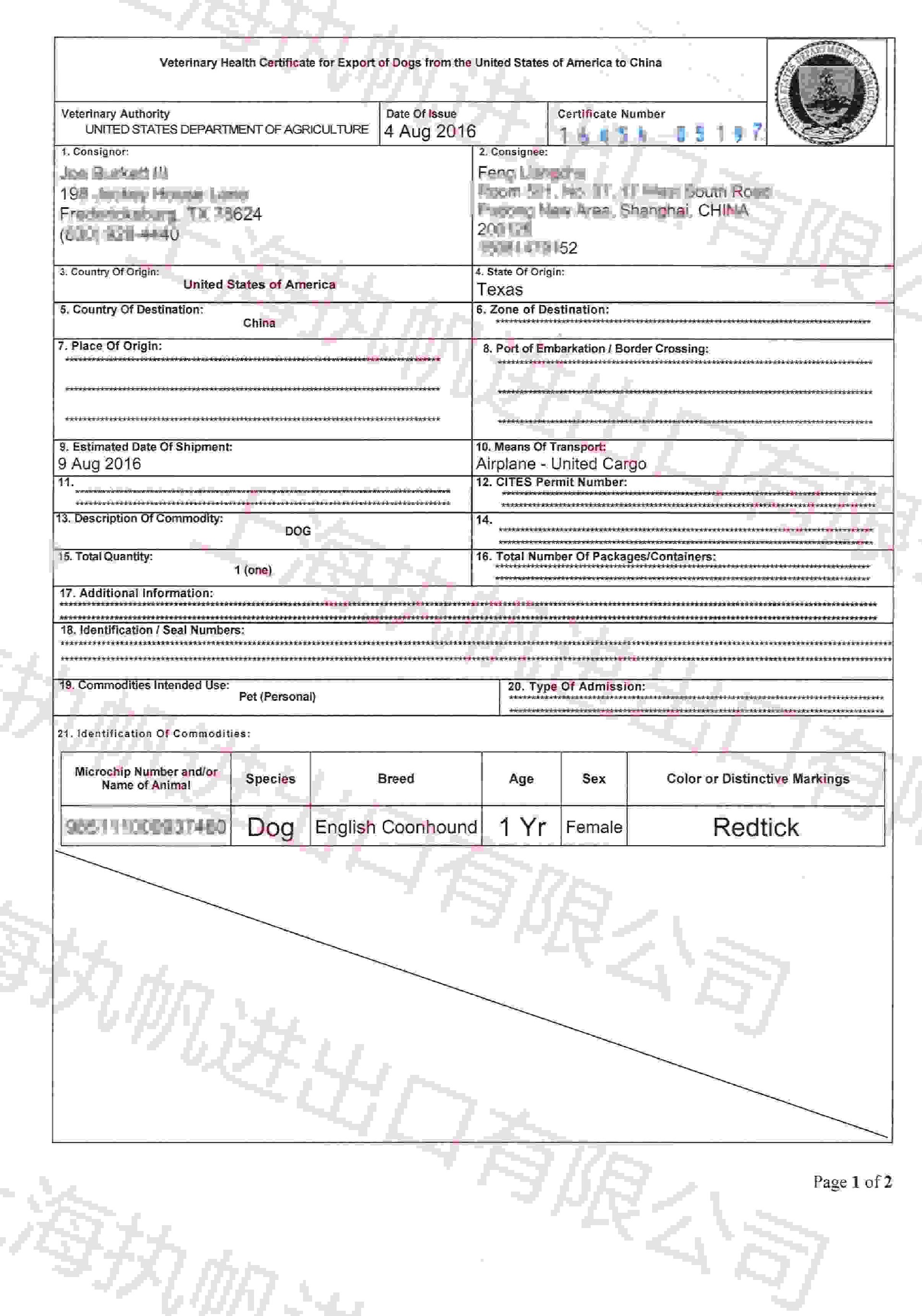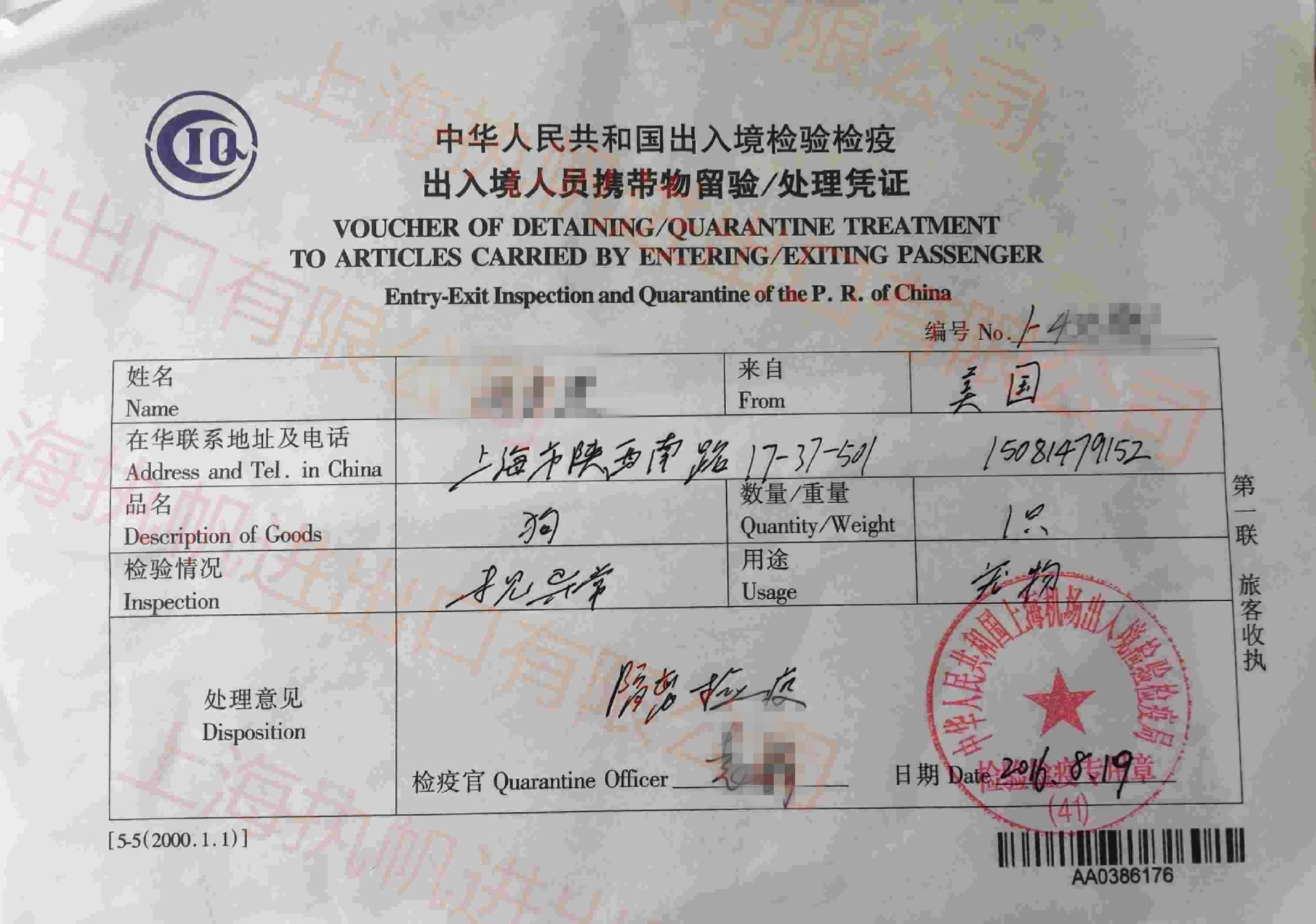 留學(xué)回國(guó)人與狗狗同航班抵達(dá) 客戶:留學(xué)回國(guó)攜帶狗狗 貨物:寵物狗,1只;操作時(shí)間:2個(gè)工作日;