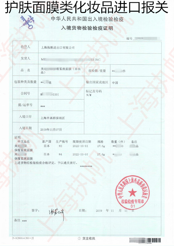 上海執(zhí)帆代理化妝品進口報關所需單證如下: